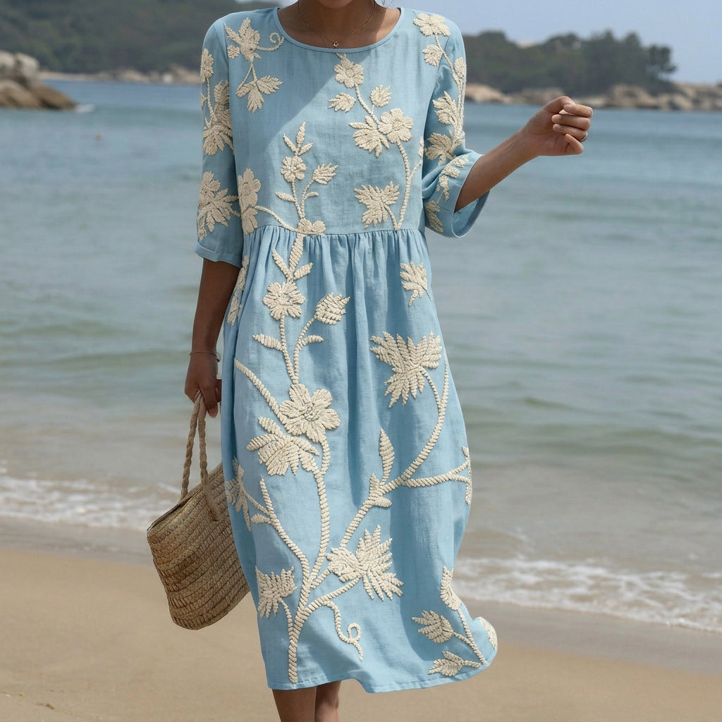 Entre na primavera e no verão com este vestido midi lindamente estampado. Ele flui graciosamente para um ajuste fácil e lisonjeiro, perfeito para saídas diárias, fins de semana relaxados ou dias de férias. A delicada estampa de plantas e flores adiciona um toque de sofisticação alegre ao seu guarda-roupa.
